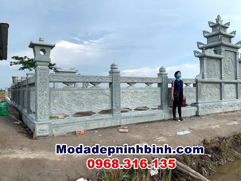 Với tổng diện tích khuôn viên khá lớn 25x16m2 , toàn bộ hàng rào được gia chủ yêu cầu thiết kế mẫu riêng khác biệt các khu lăng mộ khác với chiều cao lên tới tay bo là 136cm thuộc vào cung Phú Quý của thước Lỗ Ban.