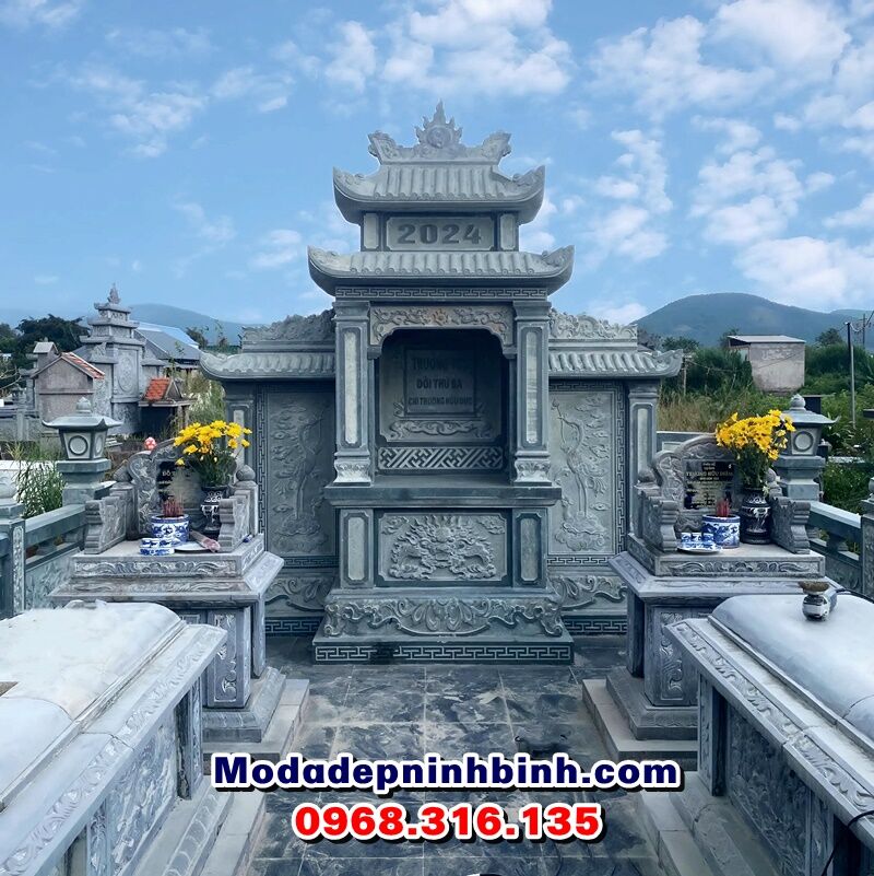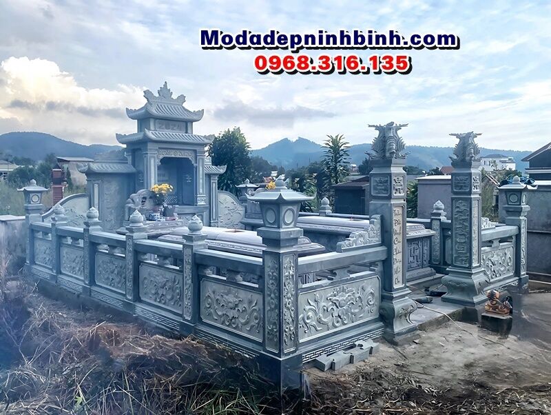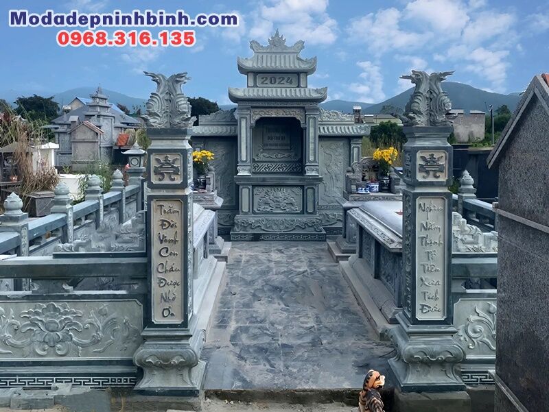Khu lăng mộ bằng chất liệu đá xanh rêu do cở sở chúng tôi thi công cho gia đình anh Tiễn tại xã Gia Lâm, huyện Lâm Hà, tỉnh Lâm Đồng tháng 10 năm 2024 có diện tích bao quanh 5x7m.