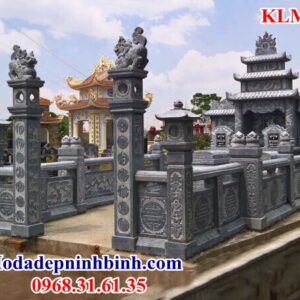 Lan can đá là hàng rào bao quanh khu vực lăng mộ, giúp tách biệt không gian của từng khu lăng với nhau. Phần này được chế tác từ đá tự nhiên nguyên khối, được chạm khắc các hoa văn tinh xảo như rồng, phượng, hoa sen hoặc các ký tự chữ Hán, vừa tạo nét đẹp cổ kính vừa thể hiện sự trang nghiêm. Ngoài ra, lan can đá giúp phân định không gian, đảm bảo sự an toàn và tôn thêm sự hài hòa cho tổng thể kiến trúc tâm linh.