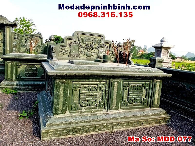 Mẫu mộ đôi đá xanh rêu Thanh Hóa MDD 077 có quy cách vô cùng Tinh tế không quá cầu kỳ rối mắt, có thể nói đây là thiết kế truyền thống hậu bành không mái vẫn phù hợp với xu thế hiện đại ngày nay. Chính vì phát huy sự kế thừa truyền thống mà lại mang tính đơn giản đẹp nên có thể nói đây là mẫu mộ đôi thông dụng nhất trên thị trường hiện nay.
