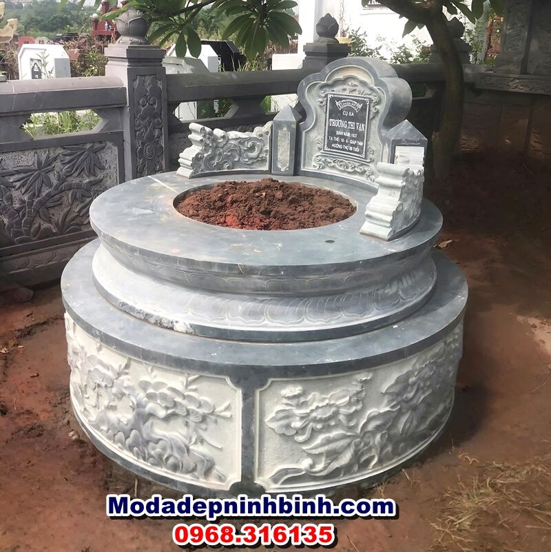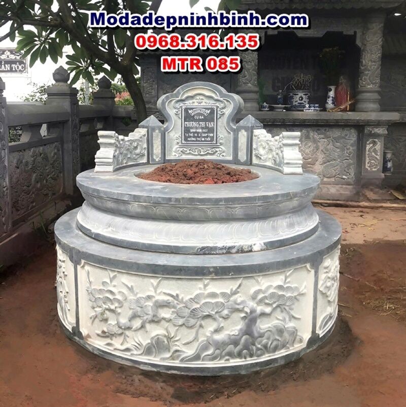 Mộ tròn đá xanh rêu đẹp MTR 085 được cơ sở chúng tôi lắp cho gia đình anh Hải tại nghĩa trang thôn Khê Ngoại, xã Văn Khê, huyện Mê Linh, Hà Nội vào tháng 7 năm 2024. Mộ có kích thước đường kính đế tiếp xúc mặt đất 133cm, cao hết mộ là 107cm. Chất liệu đá xanh rêu được gia chủ chọn để chế tác để đảm bảo độ bền bỉ với thời gian đã được chúng tối chứng minh qua rất nhiều công trình. Kết cấu ngôi mộ đá thân chia làm 2 thớt liền khối đảm bảo độ vững chắc và thẩm mỹ cao nhất cho ngôi mộ tròn đá xanh rêu MTR 085.